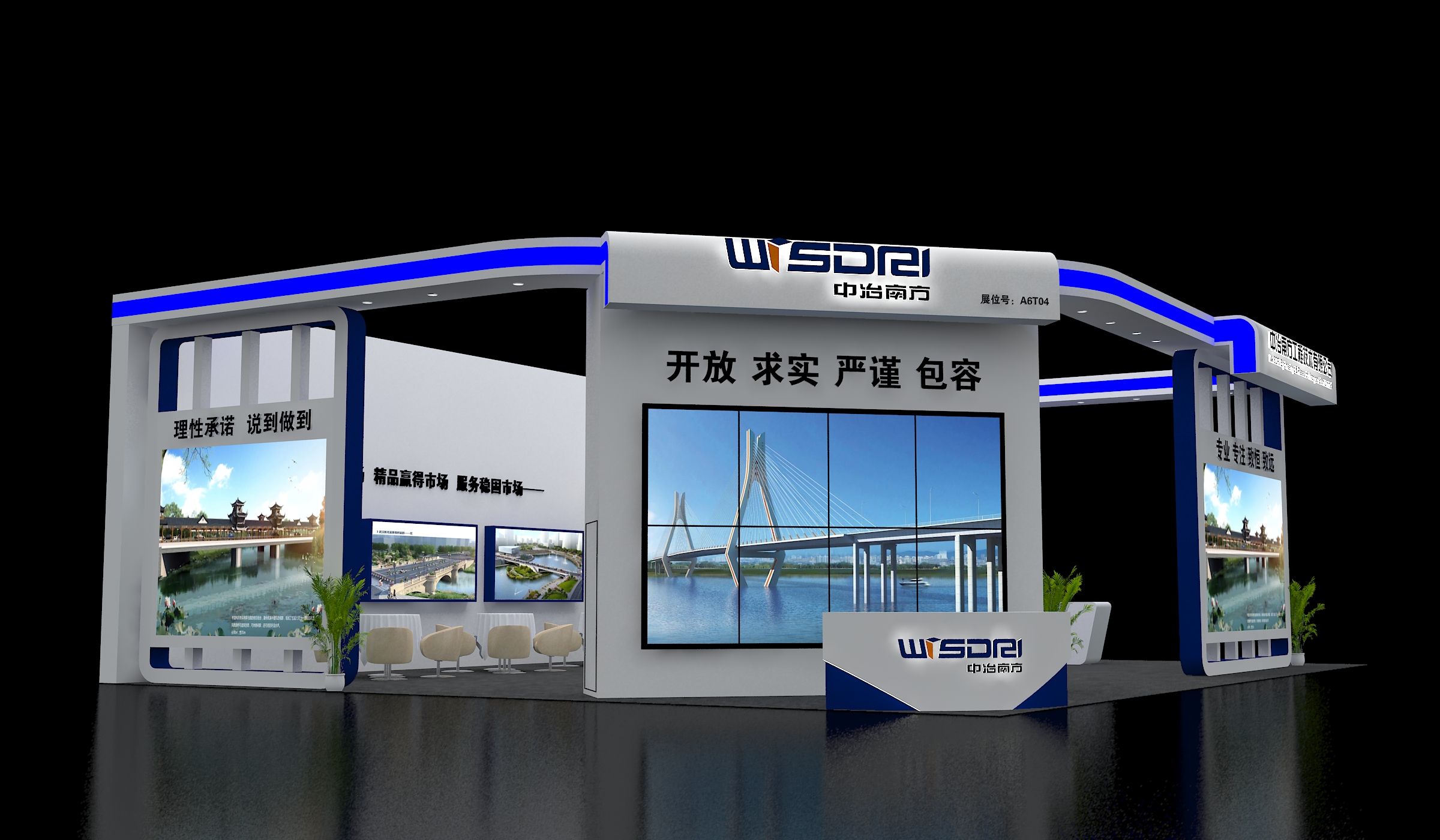 由于對橋梁行業(yè)的交流以及市場的拓展,中冶南方此次展會盛裝出席,定下180平米面積的展位展示自己的實力。司邁特以敏捷高效、富有創(chuàng)意的設(shè)計贏得此次競標(biāo),雖是第一次合作,但不論是從溝通環(huán)節(jié)的對接,還是工藝細(xì)節(jié)的處理,都使得整個展臺炫彩奪目,經(jīng)過2天2夜的奮斗,咱們團隊圓滿的完成了領(lǐng)導(dǎo)交予的任務(wù),同時也贏得了中冶南方領(lǐng)導(dǎo)的一致好評。